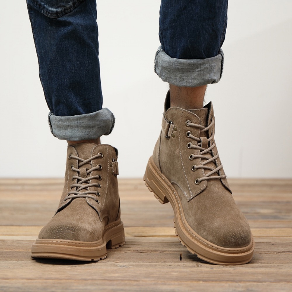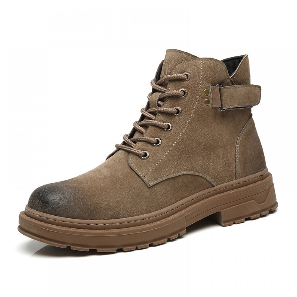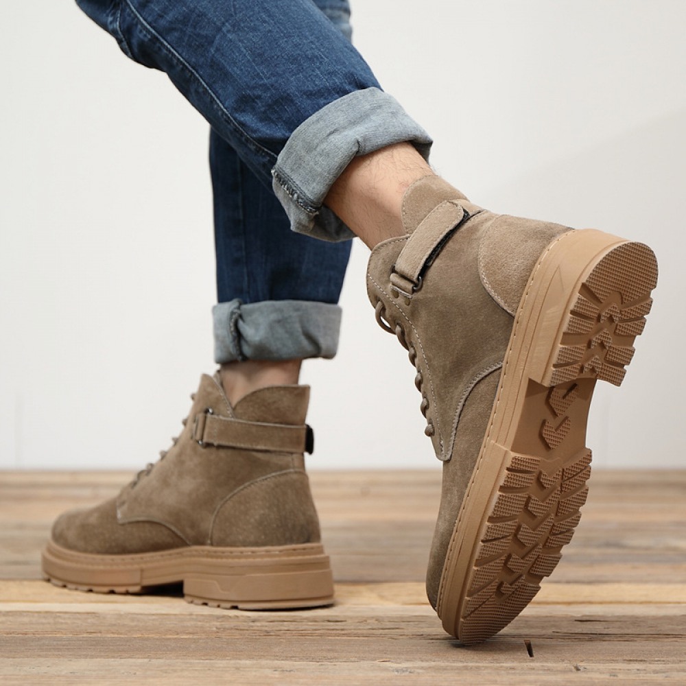 Men's Leather Short Martin Boots Casual Trend Tooling Boots High-Top Shoes