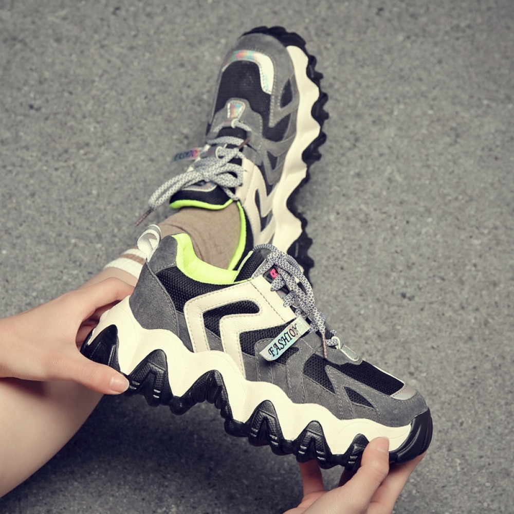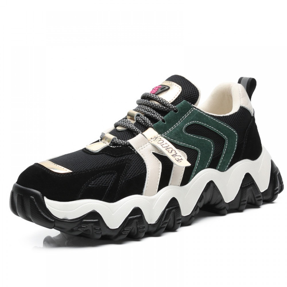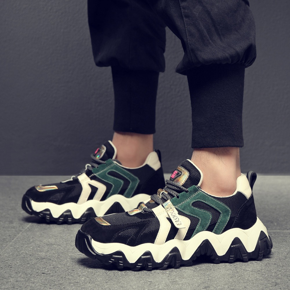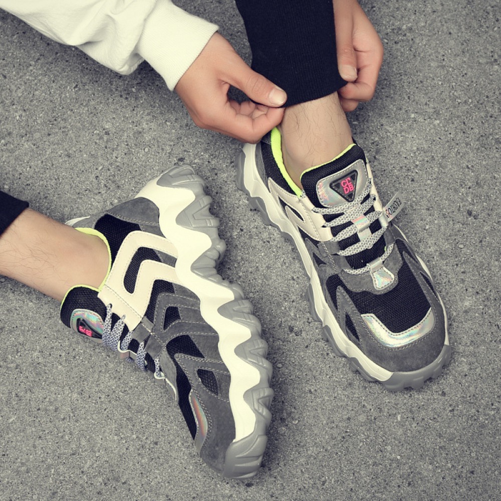 Men's Leather Fashion Casual Trendy Shoes Autumn Thick Soles Increased Breathable Mesh Sports Shoes