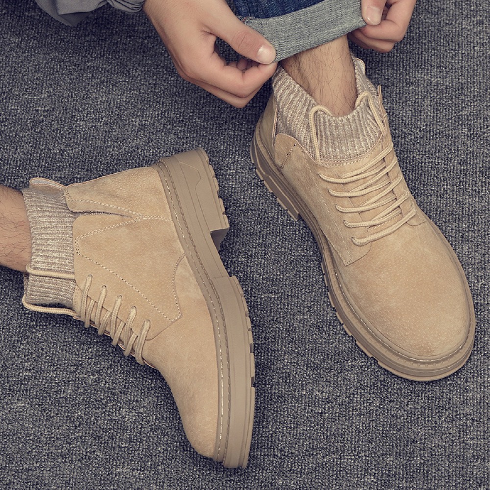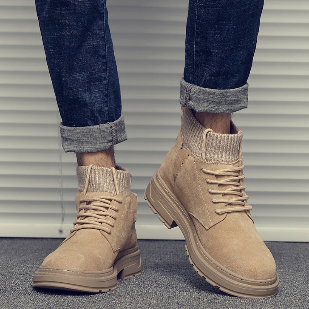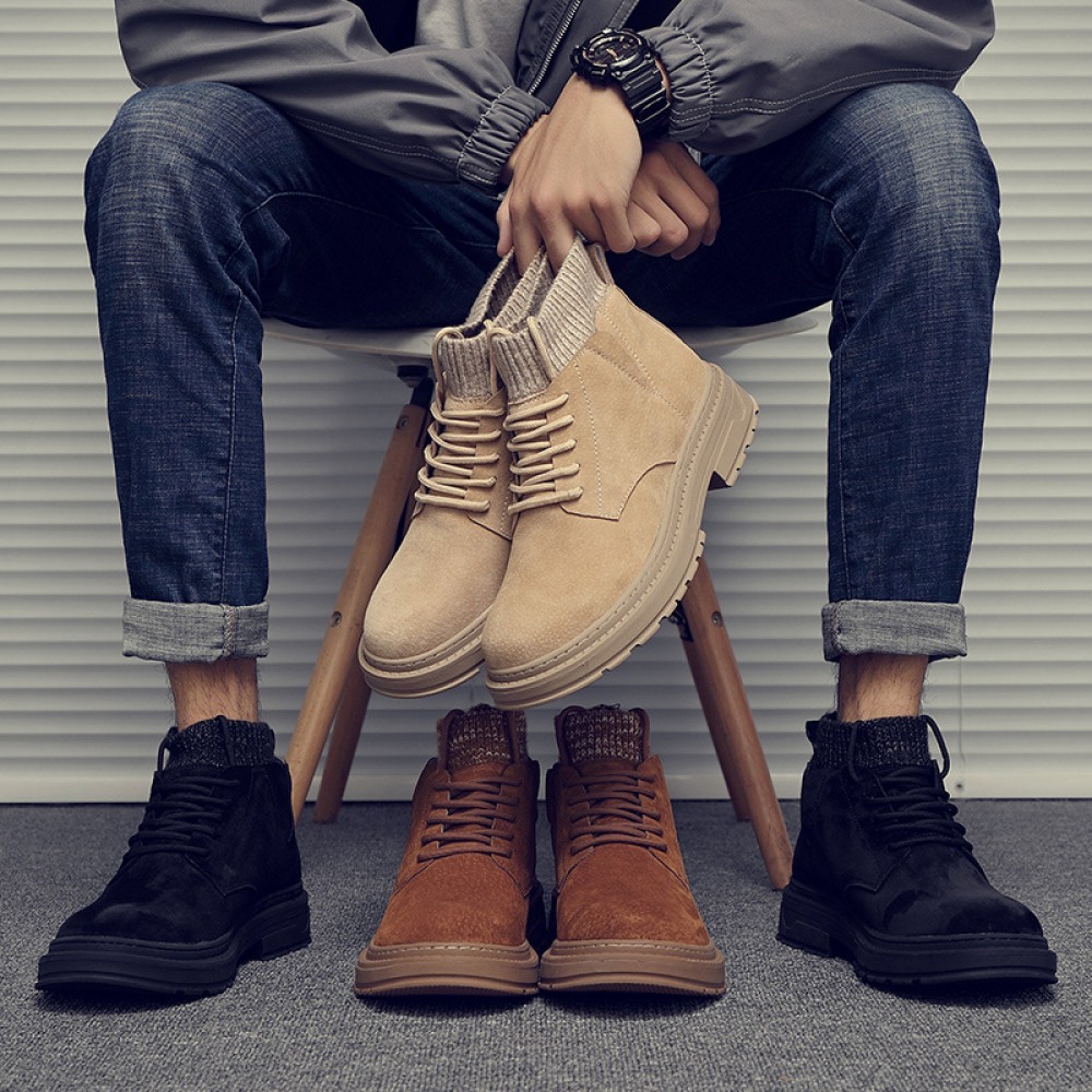 Men's Autumn and Winter New High-Top Cotton Shoes Leather Casual Short Martin Boots