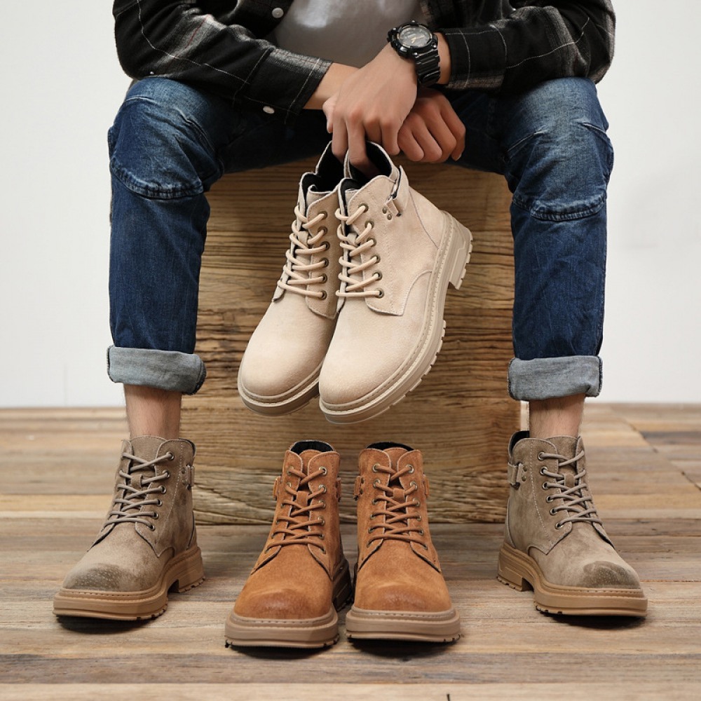 Men's Leather Short Martin Boots Casual Trend Tooling Boots High-Top Shoes